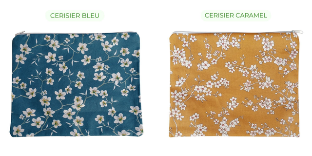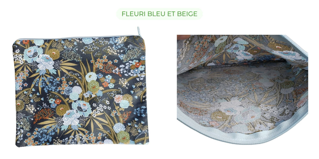 Cette fine trousse de rangement est réalisée en tissu enduit. Il s’agit d’un tissu en coton (et parfois polyester) recouvert d’une fine couche de polyuréthane, ce qui le rend imperméable.